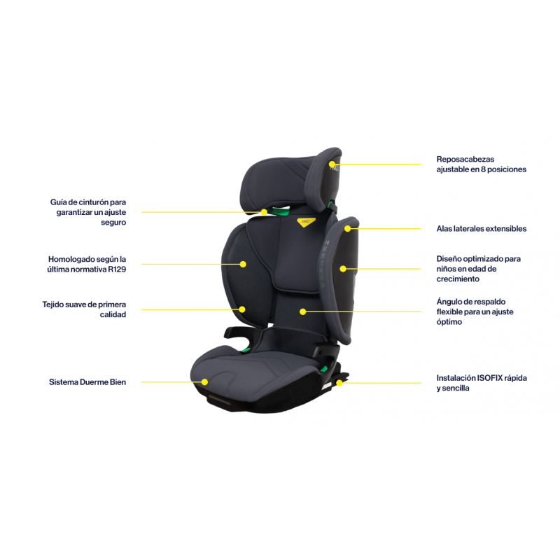 El alquiler Axkid Nextkid Barcelona es la opción ideal para familias que buscan seguridad, comodidad y facilidad de uso para niños de 4 a 12 años. Este elevador con respaldo ofrece máxima protección y un ajuste perfecto en cada viaje. Normativa: UN R129